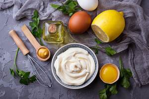 Homemade mayonnaise sauce and olive oil, eggs, mustard, lemon. Selective focus by Japanfood Team February 6, 2020 1.1K views 1.1K